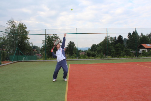 12.Ciało serwującego powinno się kierować do góry i do przodu. Zbyt szybki wyprost ramienia uderzającego i nadgarstka prowadzi do ograniczenia rytmu wykonywania całego uderzenia.