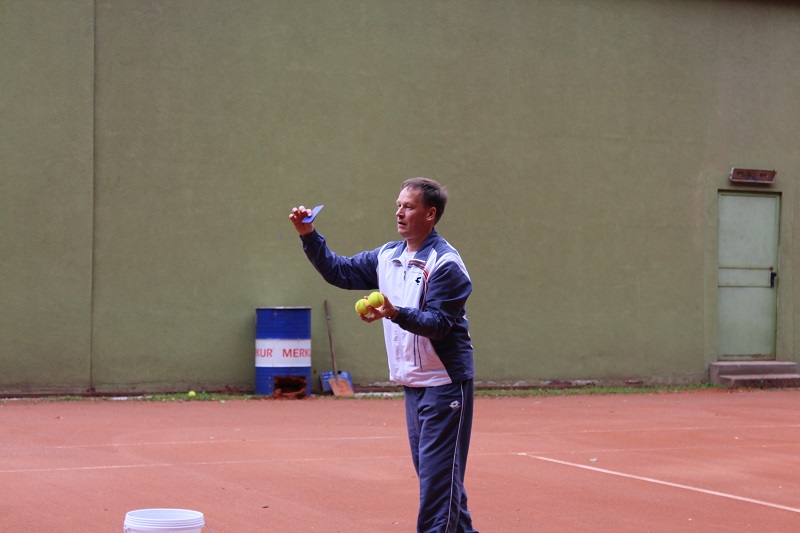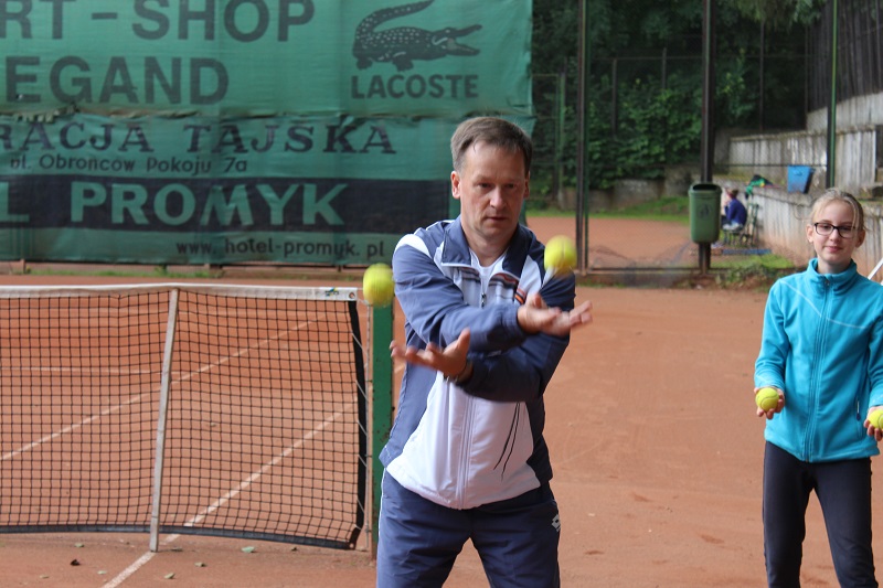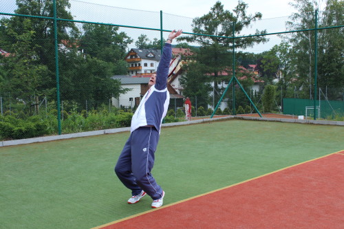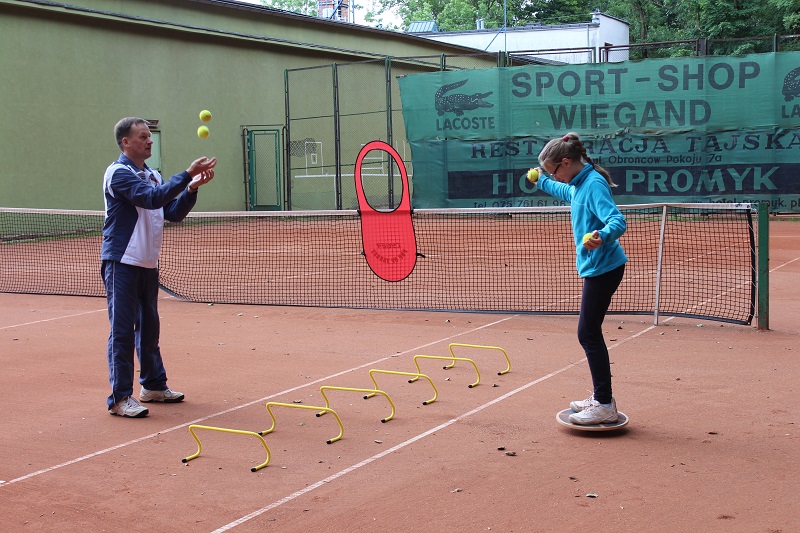 - Pokazał bardzo interesujące ćwiczenie w którym wykorzystuje sznur długi na ok. 30m w celu zobrazowania zawodnikom możliwości kątowych na korcie.