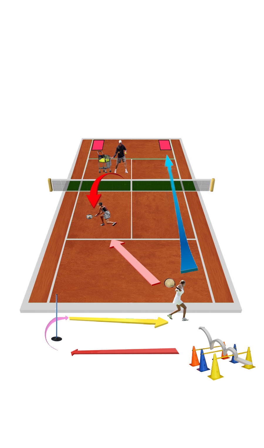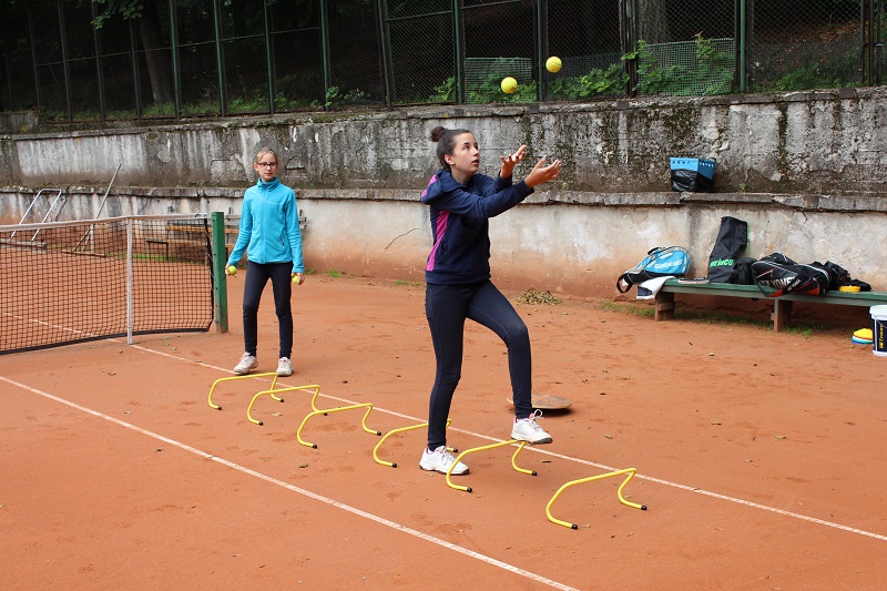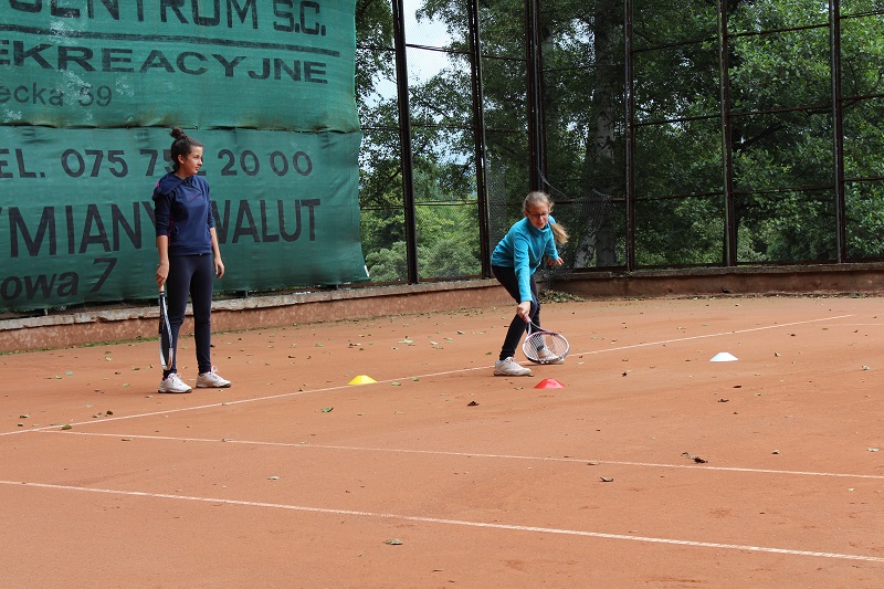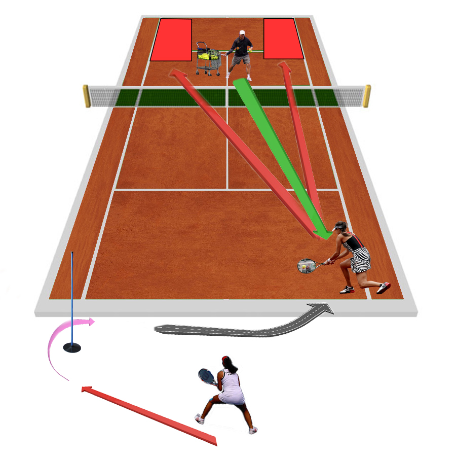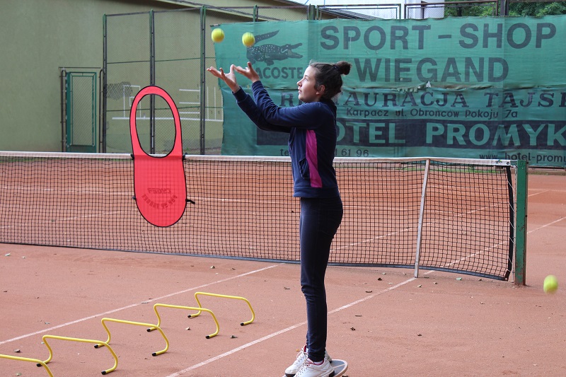 - Zaproponowała ćwiczenie dla dwóch zawodników , gdzie ćwiczący grają po przekątnej kortu forhend i bekhend, w szybkim tempie w z góry określone strefy kortu ( z reguły pod końcową linię). Akcje powinny się zamykać w 5-6 uderzeniach. Zawodnicy starają się wcześniej wizualizować co będą zagrywać. Klaudia proponuje stosować tzw. piłki neutralne tzn. piłki pod końcową linię i lekko podniesione do góry.